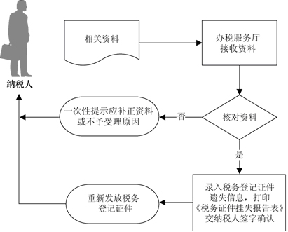 。2)在《稅務(wù)證件掛失報(bào)告表》上簽署意見,錄入稅務(wù)登記證件遺失信息,發(fā)放稅務(wù)登記證件。