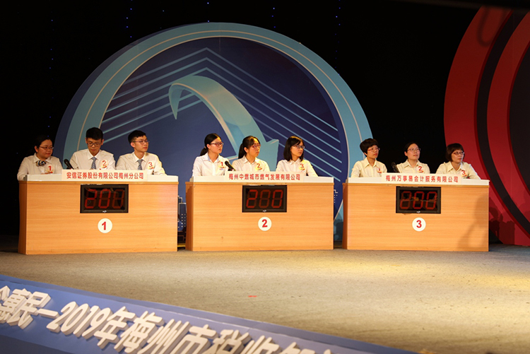 本次競賽在前期廣泛發(fā)動(dòng)梅江轄區(qū)內(nèi)3萬多戶納稅戶參賽的基礎(chǔ)上,選出各大行業(yè)代表組成18支參賽隊(duì)伍進(jìn)入初賽。經(jīng)過三場初賽的比拼,安信證券股份有限公司梅州分公司、梅州中燃城市燃?xì)獍l(fā)展有限公司、梅州萬事易會(huì)計(jì)服務(wù)有限公司、博敏電子股份有限公司、梅州智友企業(yè)管理服務(wù)有限責(zé)任公司、梅州市俊誠汽車銷售服務(wù)有限公司6支參賽隊(duì)伍進(jìn)入到今天的決賽。 經(jīng)過一個(gè)多小時(shí)比拼,梅州中燃城市燃?xì)獍l(fā)展有限公司以325的成績獲得了知識(shí)競賽第一名。梅州萬事易會(huì)計(jì)服務(wù)有限公司、梅州市俊成汽車銷售服務(wù)有限公司獲得第二名,安信證券股份有限公司梅州分公司、博敏電子股份有限公司、梅州智友企業(yè)管理服務(wù)有限公司等3支代表隊(duì)伍獲得第三名。